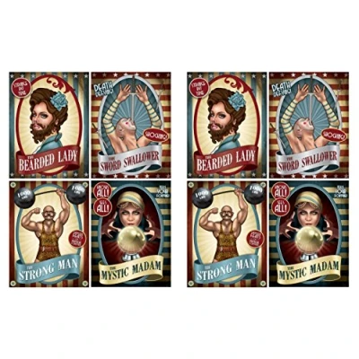 Made in the USA Includes 8 circus themed posters in the package VARIOUS DESIGNS - You will receive two of each design - Designs include a bearded lady, a sword swallow, a strong man, and a mystical madam Made of durable card stock paper and printed on one side only Each poster cutout measures 15.25 inches tall, Weight: 0.59965735264 pounds, Manufacturer: Beistle
