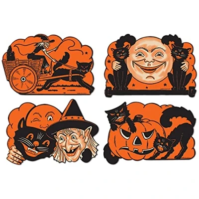 Beistle Vintage Halloween Cutouts, Paper, Black/Orange, 1 Pack