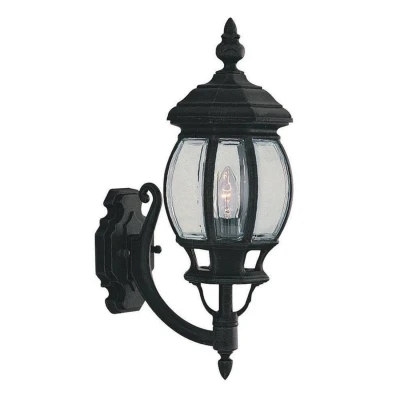 This black outdoor wall uplighter with clear glass gives the exterior of your home a look of exclusivity. The style of the lamp is traditional, with intricate design and a high quality finish. The lamp looks beautiful on any wall, and illuminates drives, pathways and gardens to stunning effect. It is also IP44 rated and fully splash proof to protect against the elements.