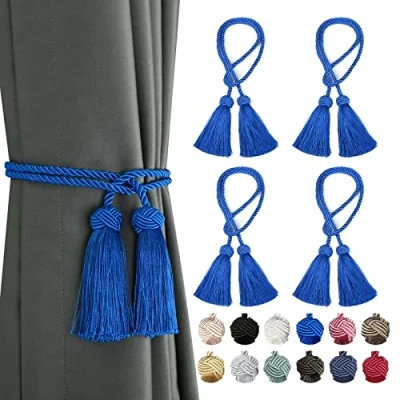 BEL AVENIR 4 Pack Curtain Handmade Tiebacks Decorative Holdbacks with Double Headed Tassel Ties (Royal Blue)