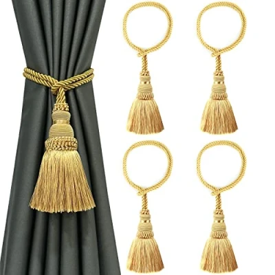 BEL AVENIR 4 Pack Curtain Tie Backs Rope Tassels for Curtains Drape tiebacks and Home Holdbacks(Gold)