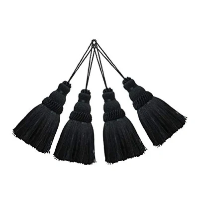BEL AVENIR 4 Pack Elegant Polyester Tassel Colorful Craft Tassels for Key Chain Straps DIY Accessories (Black)