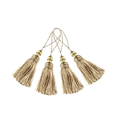BEL AVENIR 4 Pack Handmade Hanging Rope Polyester Tassel Colorful Tassels for Key Chain Straps DIY Decorative Accessories (Mix Beige)