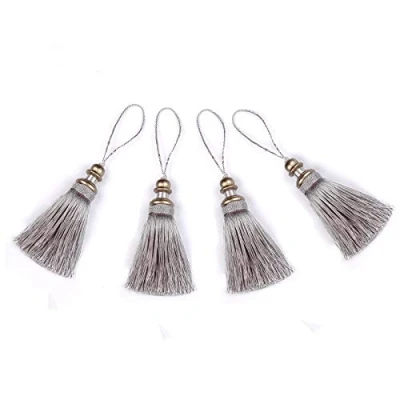 BEL AVENIR 4 Pack Handmade Hanging Rope Polyester Tassel Colorful Tassels for Key Chain Straps DIY Decorative Accessories (Silver)