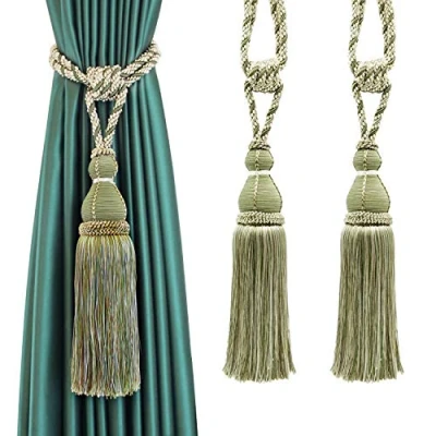 BEL AVENIR Curtain Tiebacks Hand Craft Elegant Rope Tiers Luxurious Full Tassel Drape Holdbacks for Home Office Decor (Green, 2)