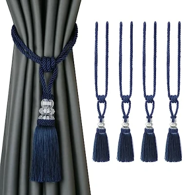BEL AVENIR Curtain Tiebacks Handmade Tassels Crystal Rope Tie Holdbacks Home Decorative 4 Pack (Navy)