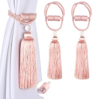 BEL AVENIR Magnetic Curtain Tiebacks Tassel Ties Backs Holdbacks Rope Convenient Drapes Handmade Home Office Decorative (Pink)