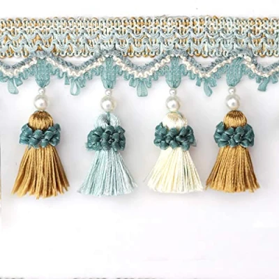 BEL Avenir Tassel Fringe Trim 6.5 Yard x 3.15 Inches Luxury Beaded Fringing Trimmings (Blue)