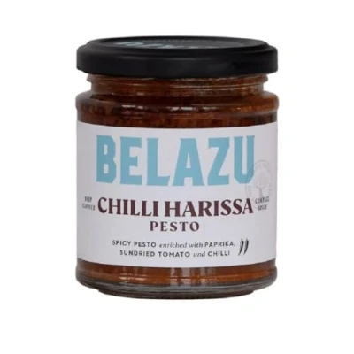 Belazu Chilli Harissa Pesto 165g is a spicy, vegan pesto made with paprika, sundried tomato, chilli, basil, and pine kernels for a deep, complex flavour. Chef-grade and suitable for vegans, it’s perfect for adding a bold twist to your favourite dishes.