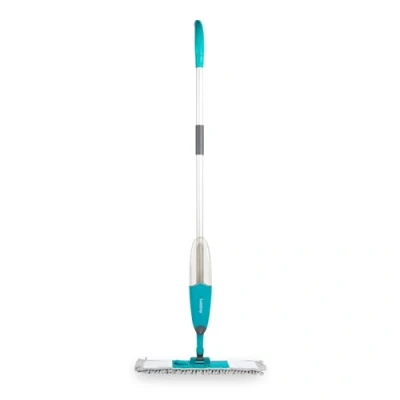 Tackle dust, dirt, and spills with ease using this versatile spray mop that dusts, scrubs, and polishes hard floors, leaving them sparkling clean. 3 mop heads are included, chenille for dusting and picking up hairs, striped for scrubbing, and coral fleece for drying and polishing. All machine-washable for repeated use. Each mop pad is treated with zinc pyrithione to help resist bacteria build-up, keeping your mop fresher for longer and ensuring a hygienic clean. Easily remove the pads without touching them thanks to the smart folding head design. Simply unclip and swap out for a fresh head. The built-in 640ml water tank allows for continuous spray cleaning without having to constantly refill, whilst the soft-grip handle offers comfort and control during use.