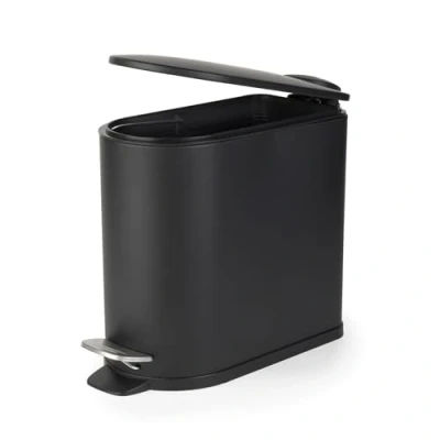 Hate touching the bin? Between us, we’ve got this! Thanks to the handy foot pedal, you can dispose of waste without a second thought. Whether it’s your bathroom, bedroom, office, or kitchen, this waste bin blends a stylish minimal design whilst staying practical. Need something that fits in tight spaces? Holding up to a 5-litre capacity, this bin is just the right size for smaller areas. Enjoy a gentle close every time with the soft-closing lid that shuts quietly and smoothly to keep things calm around the house. Crafted with from durable iron with a powder-coated finish, this bin is built to last and boasts a sophisticated black finish.