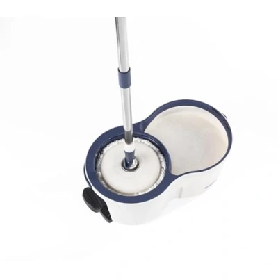 Beldray Deep Clean Spin Mop & Bucket 2 Super Absorbent Microfibre Heads, Pedal Powered 5.4L Bucket, Splash Guard to Prevent Spray, 360 Rapid Dry Head