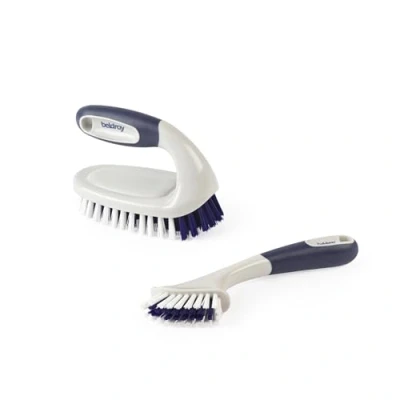 Beldray Grout & Scrub Brush Set Stiff Bristles with Integrated Scraper, Non Slip Rubber Handles, Large Scrubbing for Tiles/Bathrooms, Slim Kitchen Cleaning, Stovetops