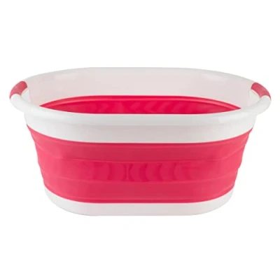 Beldray LA034816R Collapsible Laundry Basket Foldable Clothes Basket, 37 Litre Washing Tub, Large Bin with Carry Handles, Pop Up Hamper, Ideal for Camping/Festivals, Red