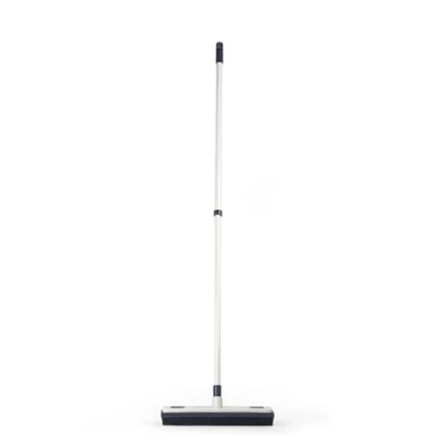 Tired of dirty floors and need a deep clean? Between us, we've got this! Our rubber head broom traps hair and dust with ease! Collect even the smallest of dirt and dust particles with the integrated dust blockers! The dust clings to the rubber bristles for effective cleaning! Streaky windows or tiles? The broom has a squeegee edge so you can wipe condensation from windows and sweep up on hard floors! Conveniently, our push broom also has cloth clips so you can attach on a wet or dry cloth for an extra shine! (Cloths not included) Struggling to reach under furniture or high up on bathroom tiles? The handle extends to 120cm for no more awkward bending!