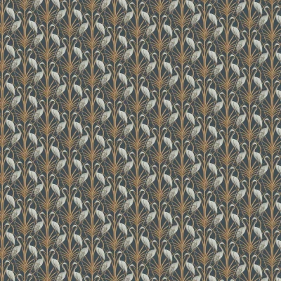 An art nouveau inspried pattern with herons and bull rush reeds creating a repeating symmetrical pattern. Shown in the navy colourway. Created to co-ordinate with many of the items from this favourite brand. Actual pattern repeat is 64 cm or 25 inches.