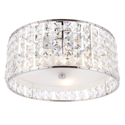 Belfont 3 Light Bathroom Flush Ceiling Chrome, Clear Crystal Detail IP44, G9