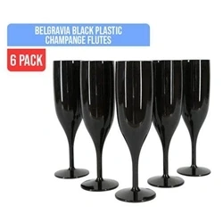 Belgravia Black Plastic Champagne Flutes Pack 6’s