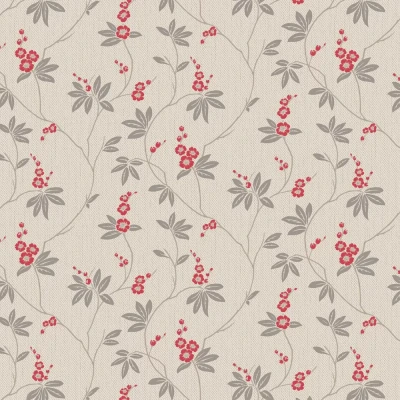 Trailing flower stems climb this design, atop a woven texture effect. Seen here in the Beige / Red colourway.