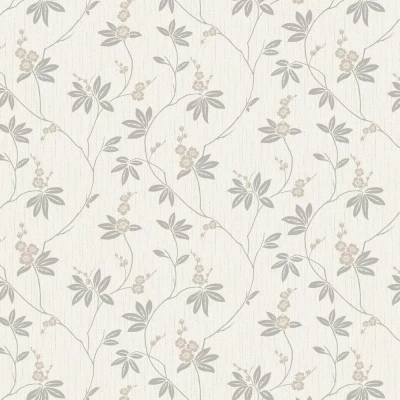 Trailing flower stems climb this design, atop a woven texture effect. Seen here in the White / Beige colourway.