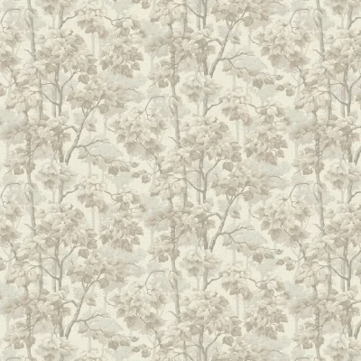 Escape to a serene tree-scape with this trailing design. Featuring tall, entwining tree branches and luscious bunches of leaves. Seen here in the Beige colourway.