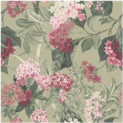 Belgravia Decor Misaki Floral Bold Flower Themed Wallpaper Ideal for Bedrooms, Living Rooms, Hallways and Dining Rooms Sage Green/Pink 2321