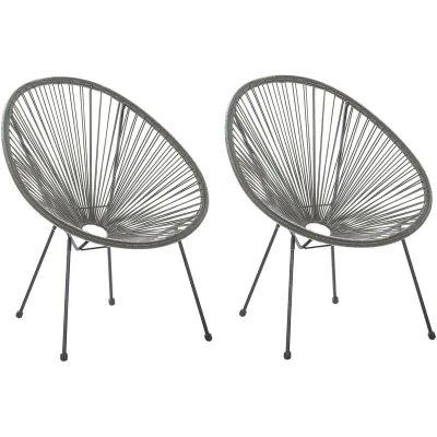 General description This set of 2 modern lounge chairs, inspired by the iconic Mexican design, will refresh any indoor and outdoor setting. The chairs feature precise string weaving made of PE rattan and a stable four-legged base constructed of powder-coated steel, ensuring total stability. They add a trendy touch to any traditional or modern outdoor or living room décor. Technical specifications Product Type: Tub Chair Style: Boho General Color: Grey, Black Shade: Dark Grey Main Material: PE Rattan Legs Material: Metal Seat Material: Rattan Dimensions: Depth: 90 cm, Seat Height: 41 cm, Width: 70 cm, Height: 87 cm Weight: 5 kg Weight Capacity: 160 kg Installation Assembly required: Legs to be fitted Estimated assembly time: 20-40 minutes Usage Suitable for both indoor and outdoor use Recommended to check assembly stability 2 weeks after setup Check screws for tightness every 3 months Other information Furniture resistant to UV rays, showcasing increased resistance to fading or