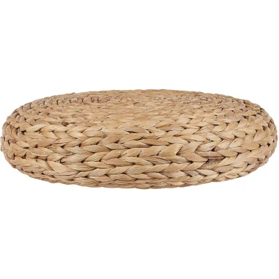 General description Introduce a zen feel to your interior and enjoy the comfort of seating on the floor with this round boho pouffe. Handwoven from natural water hyacinth, this piece has an organic feel that complements boho-inspired interiors. The pouffe is especially handy when guests come over. Technical specifications Product Type: Pouffe Style: Boho General Color: Natural, Beige Main Material: Water Hyacinth Filling Material: Foam Shape: Round Pattern: Solid Seat Foam Density: 7 kg/m3 Dimensions: Depth: 40 cm, Width: 40 cm, Height: 10 cm, Seating Surface: 40x40 cm Weight: 0.5 kg Weight Capacity: 130 kg Usage Firm and comfortable seating Well-suited for a variety of home decor Unique handmade piece Multifunctional Other information Does not require assembly Due to the use of natural materials, each product can vary in size, shape, and color, which are not considered production flaws. Products made from water hyacinth may have creases that confirm the authenticity of the material.