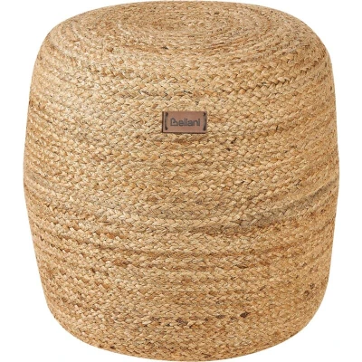 Beliani Boho Knitted Round Pouffe Ottoman Jute Cotton 46 x 48 cm Beige Dalama