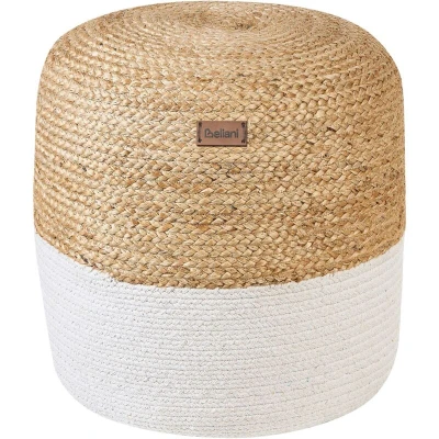 Beliani Boho Knitted Round Pouffe Ottoman Jute Cotton 46 x 48 cm White Dalama