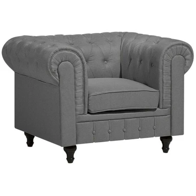 Beliani Classic English Chesterfield Armchair Button Tufted Grey Fabric Big