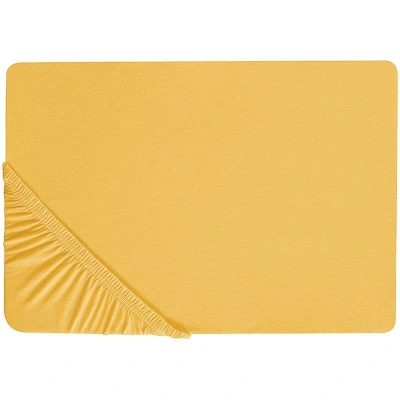 Beliani Classic Fitted Sheet Cotton 160 x 200 cm Solid Pattern Elastic Edging Mustard Janbu