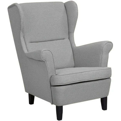 Beliani Classic Wingback Chair Upholstered High Back Grey Fabric Living Room Abson