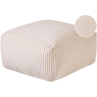 Beliani Corduroy Pouffe EPS Filling Square Solid Pattern Beige Mukki