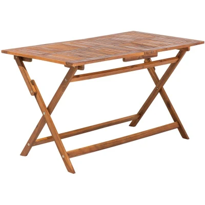 General description This rustic outdoor dining table is crafted from durable acacia wood, making it an ideal choice for various summer weather conditions. Its classic design features a sleek slatted tabletop that complements any outdoor living area. The table is easily foldable, allowing for convenient storage when not in use. Technical specifications Product Type: Folding Table Style: Traditional General Color: Brown Main Material: Acacia Wood Legs Material: Wood Top Material: Wood Shape: Rectangular Finish: Oiled Dimensions: Width: 75 cm, Length: 140 cm, Height: 74 cm Weight: 15 kg Weight Capacity: 110 kg Seats Up To: 4 People Assembly Information: Partial Assembly Required (20-40 min) Usage To maintain the table's quality, protect it from water and rain. Clean with a mild cleaner and a soft cloth in the direction of the grain. Wipe dry immediately after cleaning. Re-oil furniture with an oil finish before use and after the season, especially in damp climates. During off-season and
