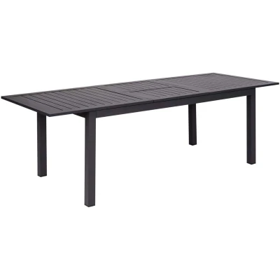 Modern Style Outdoor Table. This extending garden table, crafted from high-quality, lightweight aluminum, offers a spacious and versatile dining solution perfect for outdoor gatherings. Its simple, modern design features clean lines and a sleek finish that complements any contemporary outdoor setting. The table's extendable function allows it to easily adapt to different group sizes, making it an ideal choice for families and hosts who enjoy entertaining. Details: Product Type: Dining Table General Color: Grey Shade: Dark Grey Material Type: Metal Main Material: Aluminium Legs material: Synthetic Material Top Material: Synthetic Material Shape: Rectangular Finish: Powder Coated Seats Up To: 8 People Dimensions: Width: 90 cm Length: 180/240 cm Height: 74 cm Weight: 23 kg Weight Capacity: 75 kg Offer Includes: 1 x Table Key Features: Perfect for Dining in Larger Groups, High-Quality Materials, Rust-Proof Stable Frame, UV Resistance, Extendable Table Top for Extra Space Assembly