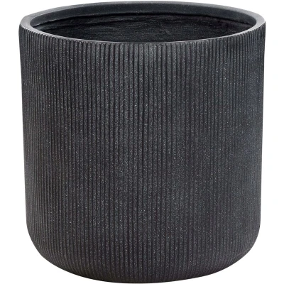 Beliani Garden Outdoor Plant Pot Planter Fluted Ribbed Surface Round Stone Clay Fibre 55x55x55 cm Graphite Grey Oreoi