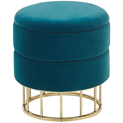 Beliani Glam Living Room Pouffe with Storage Round ø 37cm Velvet Teal Blue Gold Elgin