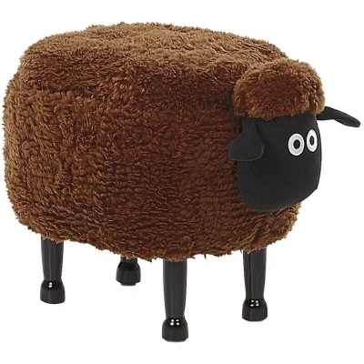 Beliani Kids Animal Stool Faux Fur Pouffe with Storage Wooden Legs Playroom Brown Sheep