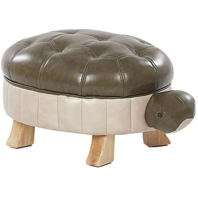 AmazonFantastic footstool in turtle shape will have your kids playing all day long Precise details give a lifelike appearance Upholstered in faux leather with rubberwood legs Spice up the kid's bedroom look by bringing in this whimsical piece Requires simple legs assembly