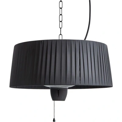 Electric Hanging Halogen Heater. Create a comfortable outdoor setting thanks to this efficient hanging infrared heater, designed to provide warmth on colder days and evenings. Intended for ceiling installation, it’s ideal for covered patios, balconies, gazebos or pergolas, offering direct warmth exactly where it’s needed. Made from powder-coated aluminium, the heater combines lightweight construction with high resistance to weather conditions, ensuring long-lasting use in any season. This model features infrared technology, which heats-up quickly, resulting in almost instant warmth and reduced energy consumption. Additionally, it operates quietly and emits no harmful gases, making it an eco-friendly alternative to traditional heating solutions. A perfect choice for those who want to extend the use of their outdoor space to colder seasons, while ensuring an efficient and pleasant source of warmth for outdoor gatherings. Details: Product Type: Patio Heater General Color: Black Material