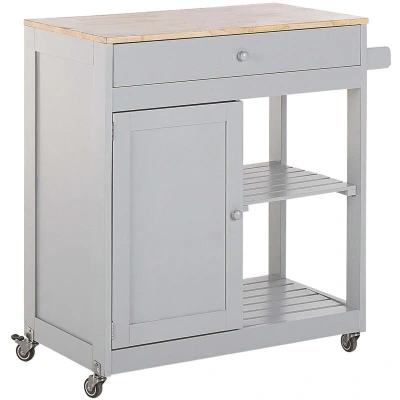 Beliani Mobile Wooden Kitchen Trolley Prep Cart with Cabinet and 2 Shelves Grey Trapani