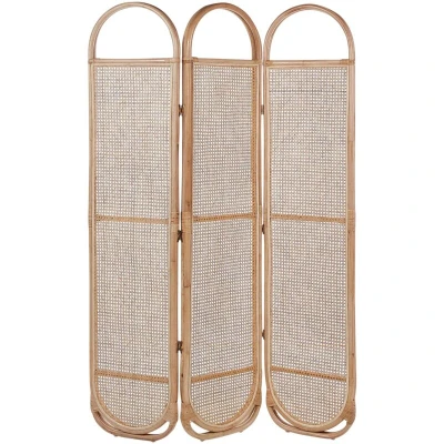 General description This 3 Panel Room Divider CORTONA in Light Brown is a decorative solution that enhances functionality in space-limited interiors. Crafted from rattan, it features a Viennese braid mesh that adds a touch of Boho style to any room. The natural-looking oval panels blend seamlessly into your existing decor, while its foldable design allows for easy storage and versatile placement. Technical specifications Product Type: Room Divider Style: Boho General Color: Natural, Brown Main Material: Rattan Finish: Melamine Handmade: Yes Dimensions: Depth: 3 cm, Width: 118 cm, Height: 180 cm Weight: 8 kg Maintenance tips Rattan: Clean only with a dry cloth. Do not use any detergents. Bamboo Wood: Clean annually with a soft-bristled scrub brush and warm, soapy water. Rinse with a damp sponge and dry with a towel. Apply a thin layer of wax or oil to the wood. Before and after the season, treat with an outdoor sealant. Store in a shaded, dry space when not in use or during adverse