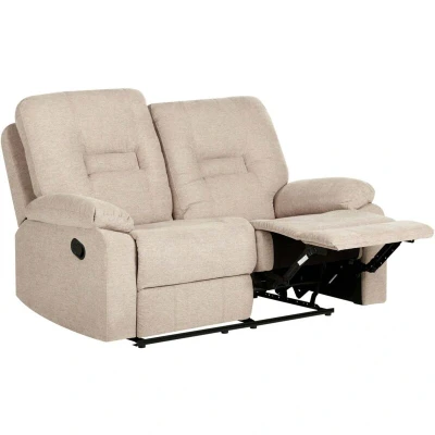 Upholstered Manual Recliner with Footrest. Modern style and functional design come together in this piece to provide supreme comfort. This sumptuous two-seater sofa features a reclining back and footrest which is regulated by bodyweight. Deep seats are thickly padded and upholstered in soft-to-the-touch and water-repellent fabric, guaranteeing support and comfort. The sofa features an iron construction, which makes it exceptionally stable and robust. Details: Product Type: 2 Seater Sofa General Color: Beige, Black Material Type: Fabric Main Material: Fabric Additional Material: Iron Filling Material: Foam Material Composition: 100% Polyester Adjustment Type: Manual Arm Style: Pillow Top Pattern: Solid Seat Construction: Pocket Springs Seat Foam Density: 28 kg/m3 Seats Up To: 2 People Dimensions: Armrests Height: 60 cm Depth: 72 cm Seat Thickness: 22 cm Seat Height: 49 cm Width: 149 cm Height: 101 cm Seating Surface: 117x53 cm Weight: 40 kg Weight Capacity per Person: 150 kg Offer