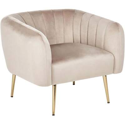 Beliani Modern Glam Round Back Armchair Decorative Velvet Golden Legs Taupe Laconia