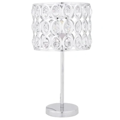 AmazonLuxurious table lamp for modern and glam interiors Silver base features chrome finish Fancy shade constructed of metal frame and crystal droplets Great accent piece that will decorate any space E27 type bulb is necessary; it is not included with the purchase