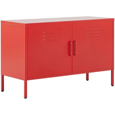 Beliani Modern Industrial Metal Steel Office Sideboard 2 Doors Shelves Red Uria
