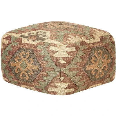 General description This exceptional pouffe is designed to complete the look of your interior. With its oriental geometric pattern, it adds a decorative touch that elevates any space. The pouffe is crafted using a traditional weaving technique called panja, ensuring high quality and precision. Technical specifications Product Type: Pouffe Style: Retro General Color: Multicolour, Brown, Green, Red, Beige Main Material: Jute Additional Material: Wool Filling Material: EPS Beads Material Composition: 75% Jute Shape: Square Pattern: Geometric Dimensions: Depth: 50 cm, Width: 50 cm, Height: 30 cm, Seating Surface: 50x50 cm Weight: 2 kg Weight Capacity: 100 kg Usage This pouffe serves multiple purposes: it can be used as an extra seat for guests or as a comfortable footstool. Its decorative yet functional design makes it a versatile addition to your home decor. Other information Assembly Information: Does not require assembly Maintenance tips: 1. Clean with dry shampoo and a wet sponge or a