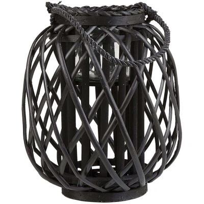 General description This woven lantern brings nature and tranquillity inside, making it perfect for a variety of home settings. Crafted from willow branches in an oval shape, it serves as an ideal accent piece for your living room or balcony. You can place it on the floor, sideboard, or table, and it includes a small glass holder suitable for tea lights. Technical specifications Product Type: Lantern Style: Boho General Color: Black Main Material: Willow Wood Additional Material: Glass Shape: Oval Handmade: Yes Dimensions: Depth: 25 cm, Width: 25 cm, Height: 30 cm Weight: 1 kg Usage Designed with a carrying handle for easy transport. Blends well with any decor. Unique handmade piece made from natural materials. Lightweight and easy to move around. Other information Wood Maintenance: Clean with a mild cleaner and a soft cloth in the direction of the grain. Wipe dry immediately after cleaning. Furniture with oil finish should be re-oiled before use and after the season before storing,