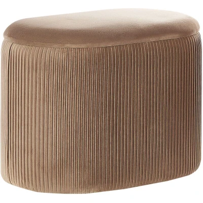 Velvet Footstool with Storage. This decorative pouffe is a great addition to most living rooms or bedrooms, that will provide both a seat and a storage compartment. Upholstered in high-quality velvet, it is durable and has a glamorous vibe to it. The material is adorned with pleats. The storage is hidden away under a lid, which keeps clutter out of the way. Details: Product Type: Pouffe General Color: Beige Material Type: Fabric Main Material: Velvet Additional Material: Plywood Filling Material: Foam Material Composition: 100% Polyester Shape: Oval Pattern: Solid Seat Foam Density: 25 kg/m3 Storage: Yes Dimensions: Depth: 35 cm Width: 55 cm Height: 41 cm Seating Surface: 55x35 cm Weight: 6 kg Weight Capacity: 150 kg Offer Includes: 1 x Pouffe Key Features: Chic Look, Elegant Design, With a Decorative, Vertical Quilt, Silky-Smooth, Velvety Fabric, Functional Storage Space Assembly Information: Does Not Require Assembly Additional Information: Please keep in mind that velvet fabric can